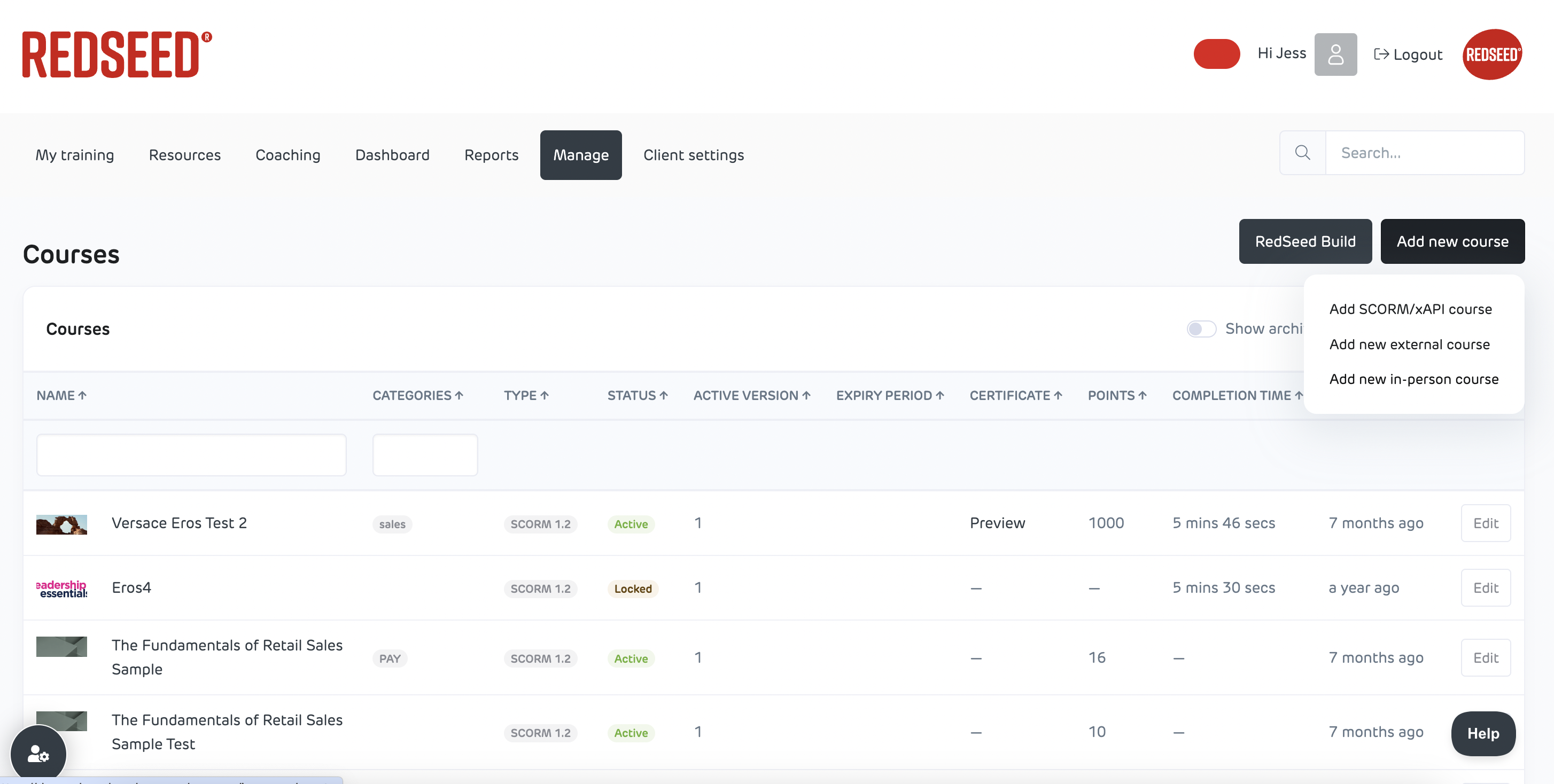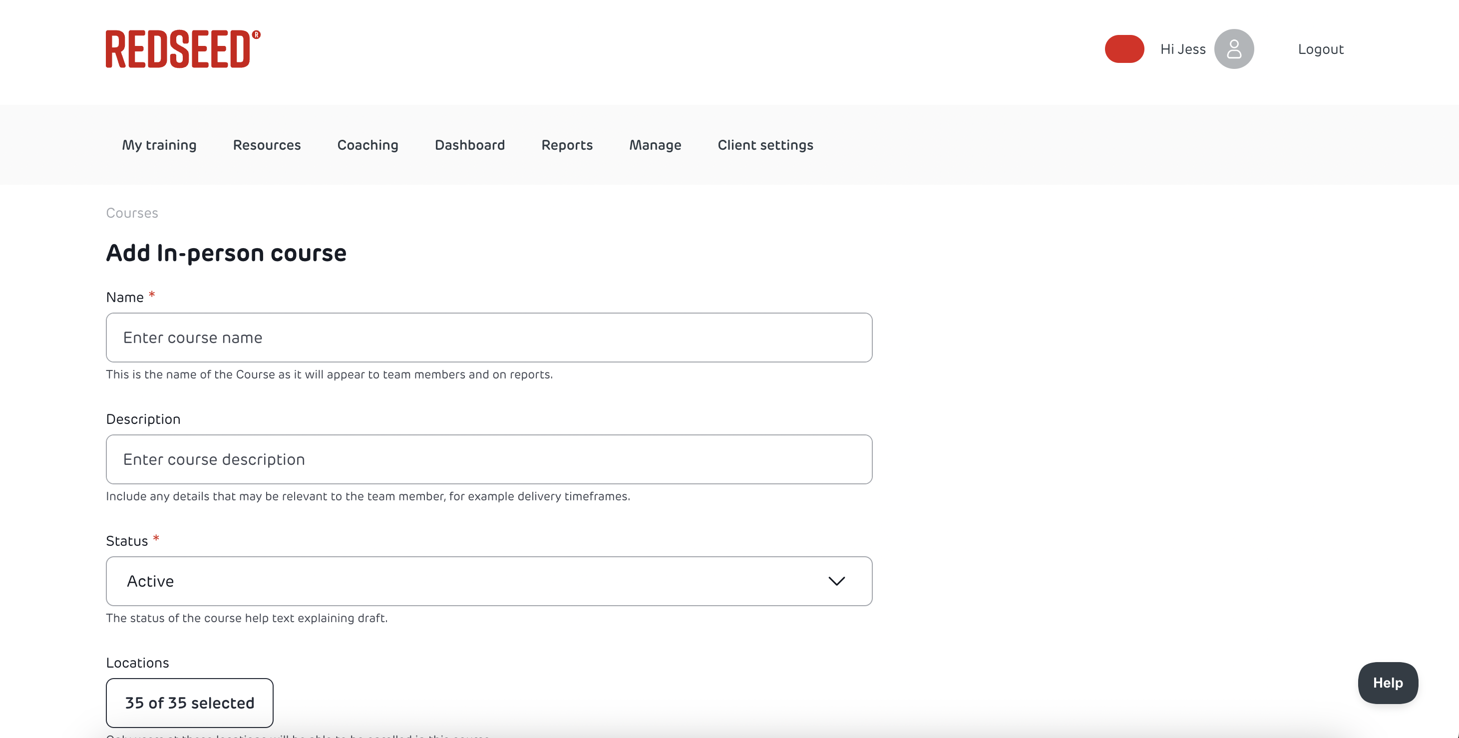 - Go to Location Dashboard β Manage tab β Courses.
