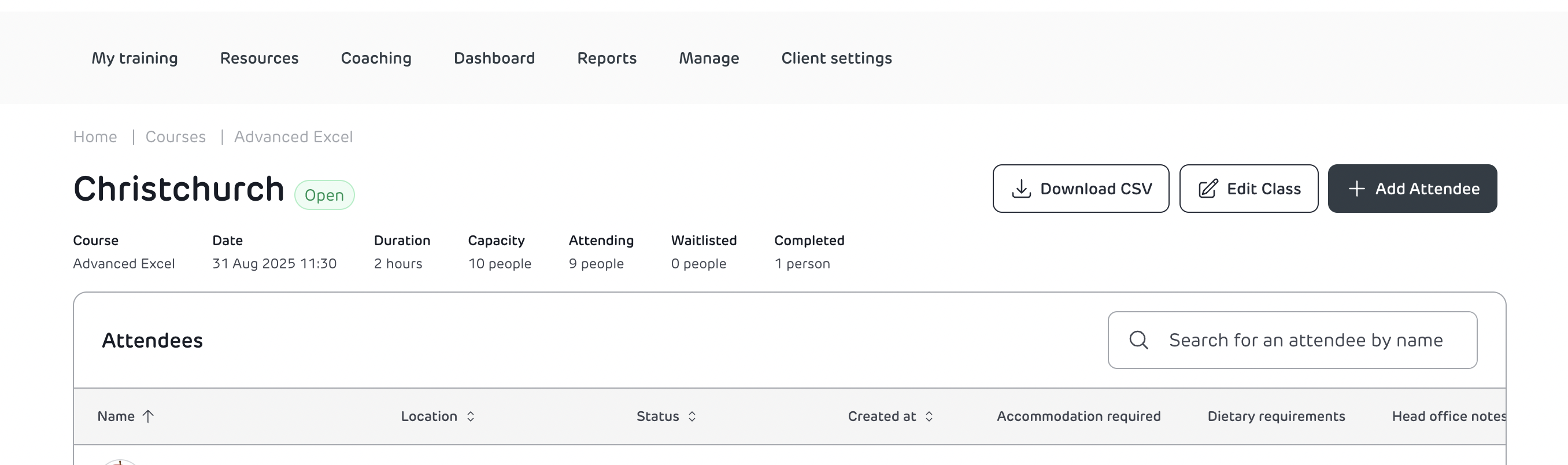 Managers cannot create courses or classes but can register and manage attendees from their own location.