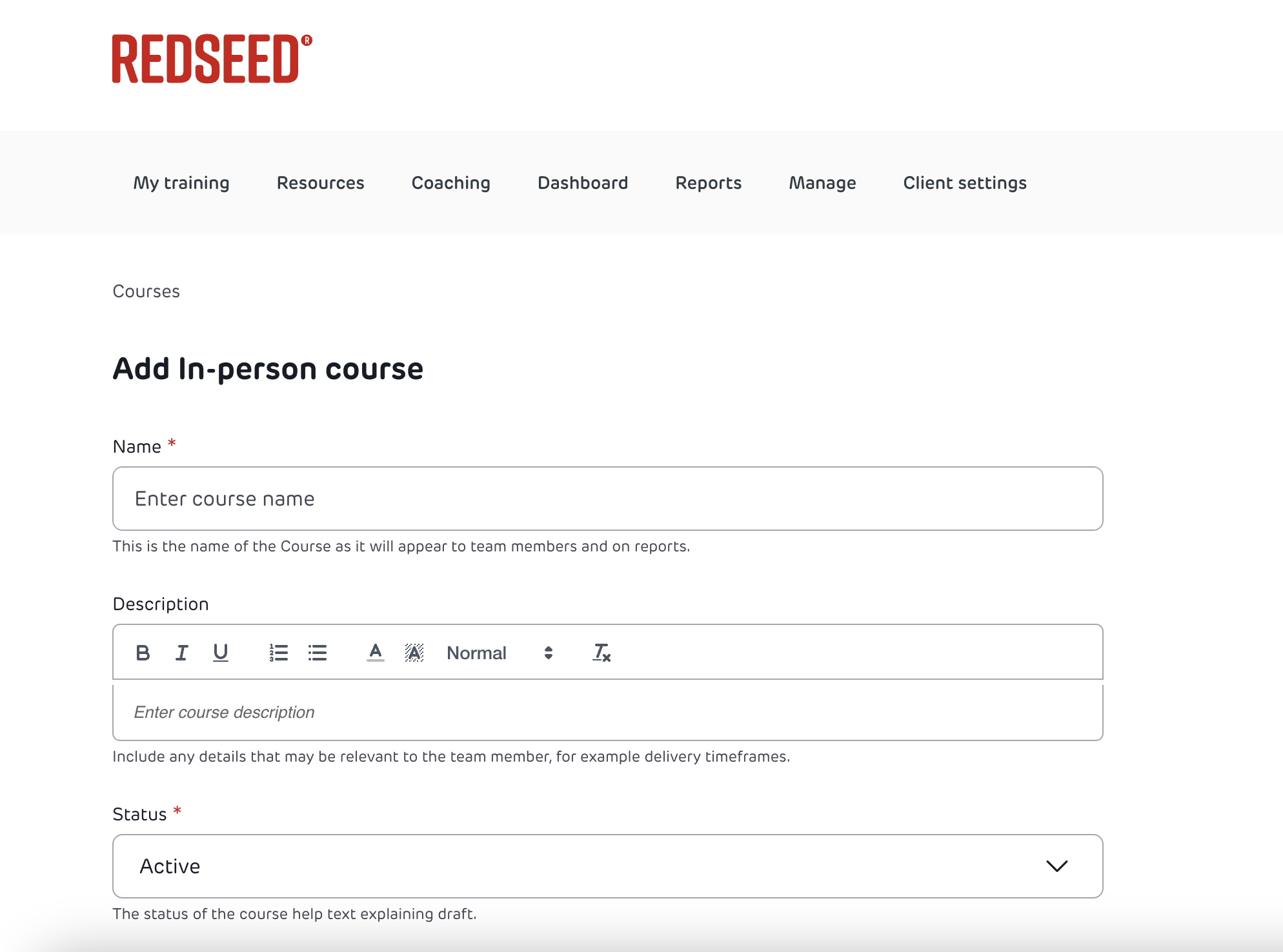 Top-level admins can create new in-person courses and classes, roll them out to specific locations, and mark team members as having attended the course, which creates a "completed" training record for the team member.